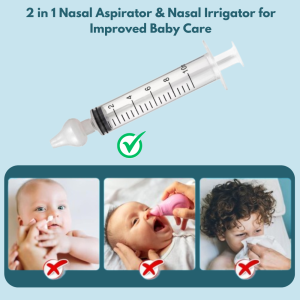 2-IN-1 NASAL CARE SOLUTION – This versatile nasal syringe functions as both a mucus extractor and a nasal irrigator for thorough cleaning. The dual-purpose design ensures efficient booger suction and helps prevent nasal block caused by mucus buildup.