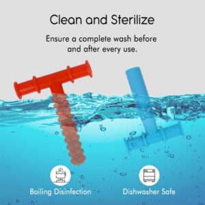 CHEWY TUBE FOR ORAL STIMULATION AND STABILITY (GREEN & BLUE): The Green Chewy Tube features sensory bumps that are suitable for babies before teething and adults aiming to maintain oral muscle strength. The blue chewy tube is the hardest, which improves oral stability. It can be used to ease and relieve wisdom tooth pain.