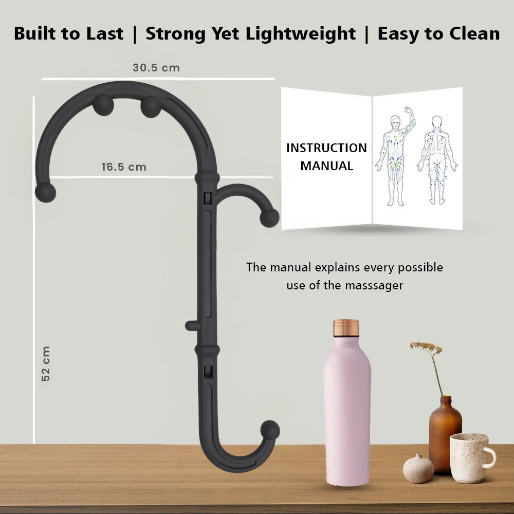 DURABLE AND RELIABLE: This complete body massager features a non-detachable design with BPA-free durable plastic, ensuring its overall sturdiness and long-lasting performance and increases stability during use. This feature of the hook therapy cane also makes it easier to handle and clean.