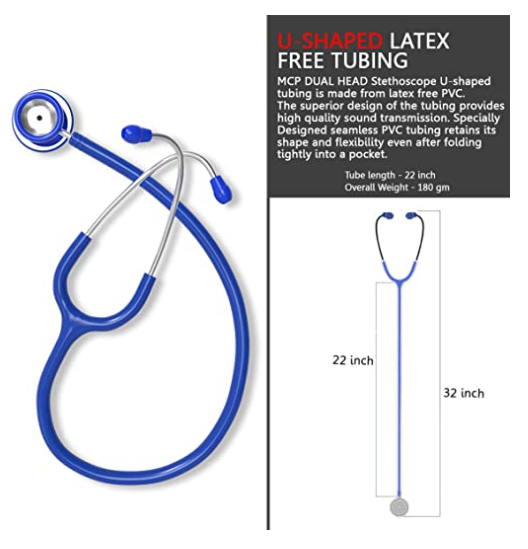 Login / RegisterThe stethoscope is an acoustic medical device for auscultation or listening to the internal sounds of an animal or human body. It typically has a small disc-shaped resonator that is placed against the chest, and two tubes connected to earpieces. It is often used to listen to lung and heart sounds. Reliable Performance for Heart, Lung, And Blood Pressure Assessment. It is also used to listen to the intestines and blood flow in arteries and veins.