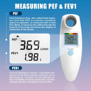 The Sonmol Smart Digital Spirometer – Peak Flow Meter is also portable, easy to use, and a great device for the spirometry and respirometry processes. It allows you to take it with you wherever you go and perform tests whenever you need to. In comparison to the traditional peak flow meter, the digital spirometer provides a more advanced and accurate measurement of lung function, offering real-time data and enhanced tracking capabilities. It can be used in conjunction with an inhaler, pulmonary medicines, breathing exercisers, respiratory muscle trainers, or other respiratory exercisers, and it is better than a 3-ball inspiratory and expiratory flow-meter for additional analysis, tracking, and monitoring of your lung function and respiration health. This spirometer has a user-friendly interface makes it easy to operate, and you can use it whenever you need to check your breathing.