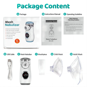 Our ultrasonic nebulizer is user-friendly, rechargeable and the digital display screen makes operation and monitoring effortless. It’s low medicine indication and low battery indication can alert you when there is a lack of liquid and also when the battery is low. It has 3 tailored timing options- Adult mode: 10 minutes (fast atomization), Child mode: 20 minutes (gentle nebulization), and 5 minutes for an efficient semi-automatic cleaning mode. Microporous atomization technology uses high-frequency vibrations to break down medicine into a fine mist and ensure that the treatment is effective, hygienic, and safe.